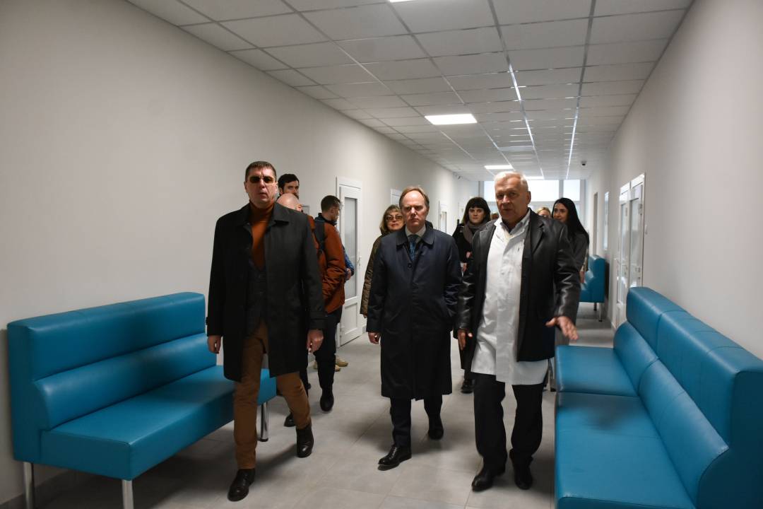 У рамках благодійного проєкту Фонду «Партнерство за сильну Україну», завдяки коштам, виділеним урядом Великої Британії, у лікарні замінили 300 віконних конструкцій та встановили у приймальному та гінекологічному відділеннях сучасні гінекологічні кушетки для маломобільних пацієнток, — розповів під час візиту Посла гендиректор лікарні №3 Віктор Янголь.