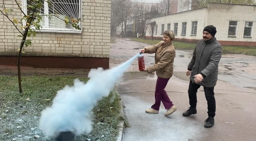 ☑️Тренінг завжди передбачає практичне відпрацювання якихось навичок, тож незважаючи на несприятливі погодні умови всі учасники мали змогу потренуватися в гасінні умовного вогнища первинними засобами пожежогасіння.