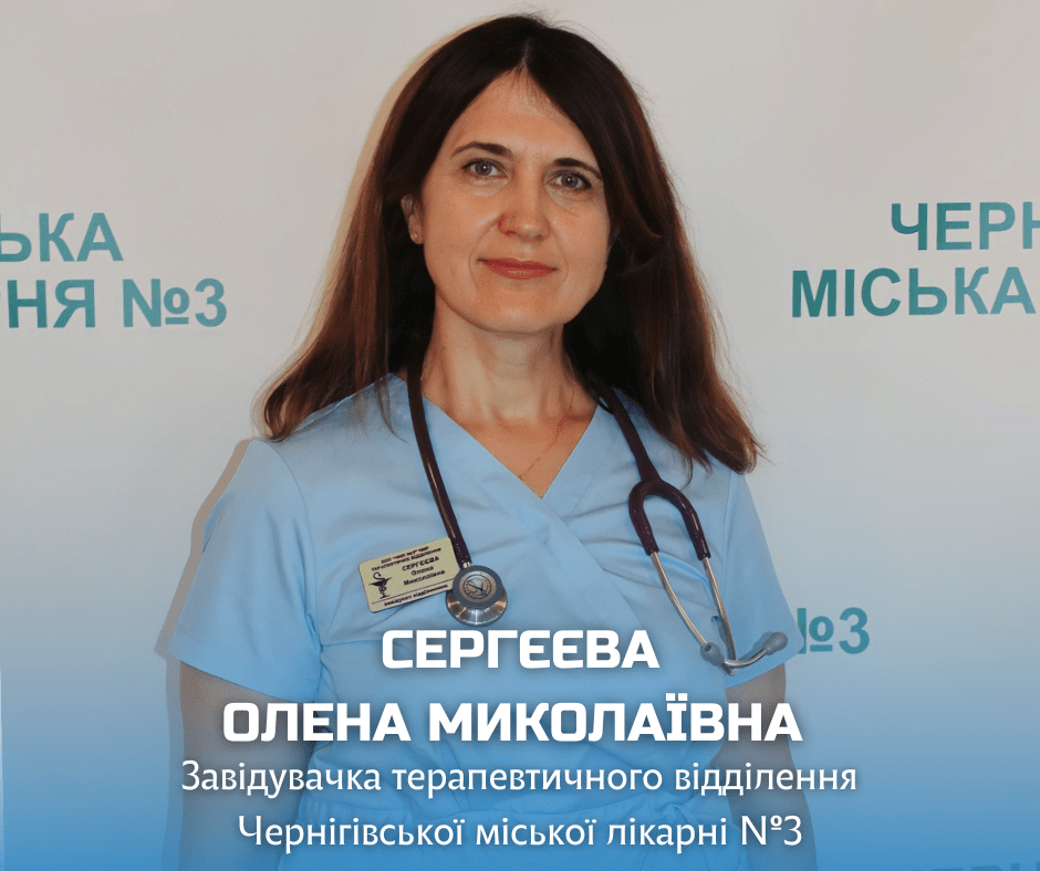 Вітаємо завідувачку терапевтичного відділення, лікаря-терапевта СЕРГЄЄВУ ОЛЕНУ МИКОЛАЇВНУ з отриманням державної нагороди та присвоєнням почесного звання “ЗАСЛУЖЕНИЙ ЛІКАР УКРАЇНИ” від президента України Володимира Зеленського!