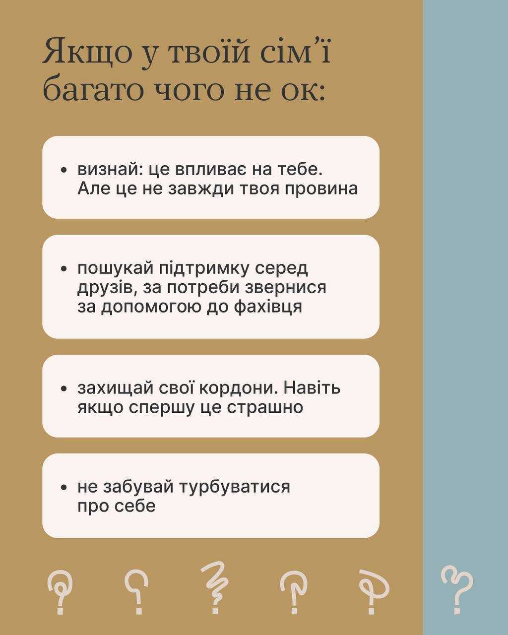 Тому в каруселі пишемо про різні сім’ї, щоб тобі краще розуміти, що з тобою відбувалося і що ти можеш змінити