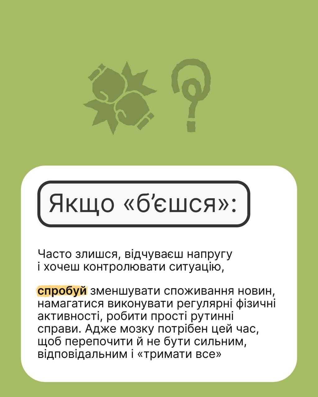 Якщо злишся, тривожишся чи метушишся, або взагалі нічого не робиш — це нормально. Не свари себе за це, а краще постався з розумінням і підтримай. Є ідеї як — у каруселі.