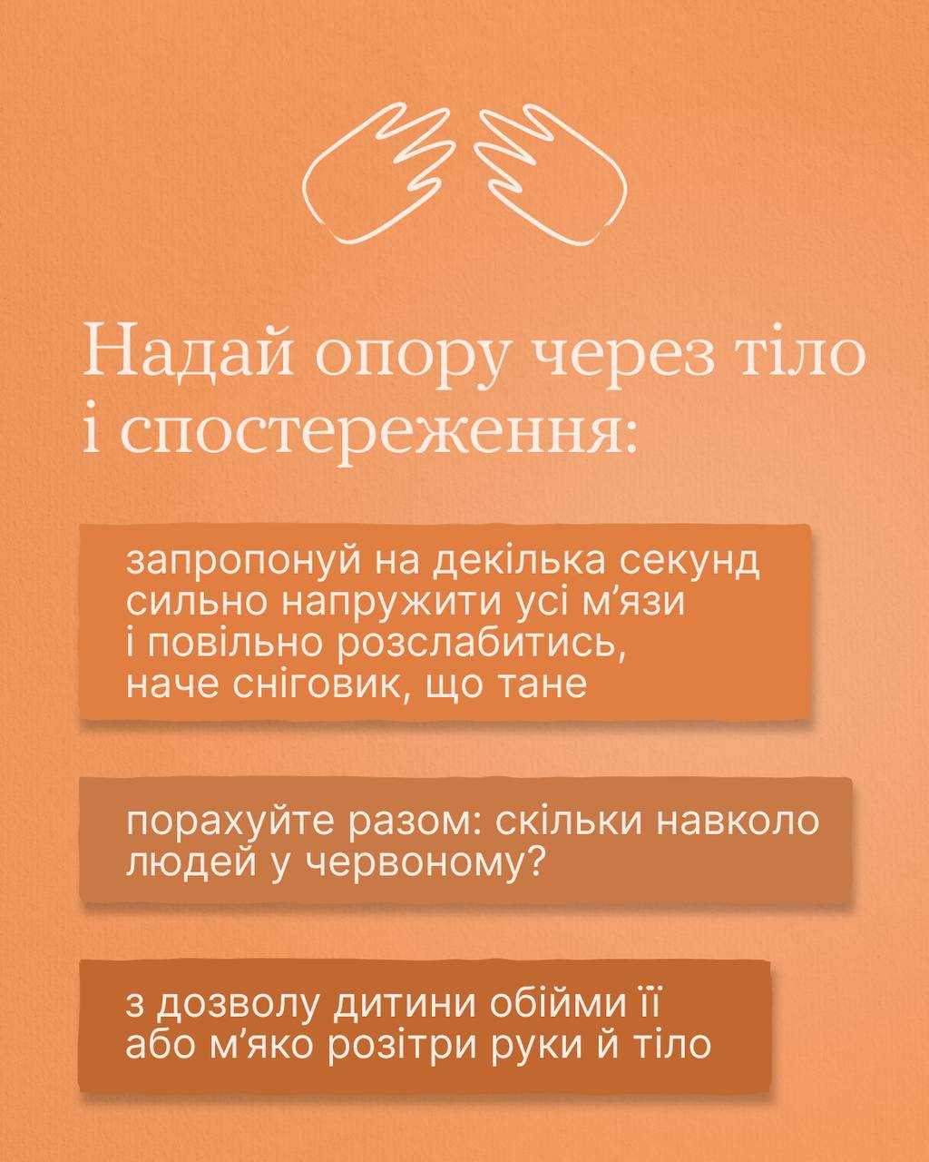 У каруселі зібрані прості дії, які допоможуть підтримати дитину під час панічної атаки