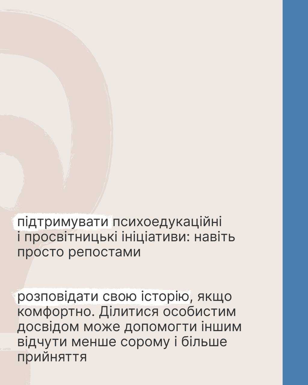 Адже турбота про ментальне здоров’я має бути такою ж звичною справою, як похід до стоматолога. Погоджуєшся?
